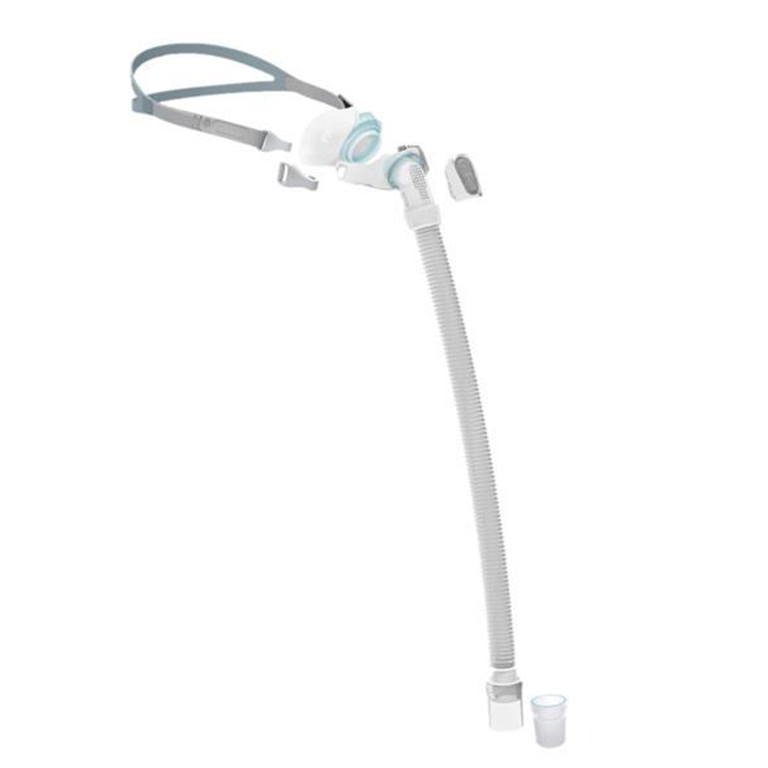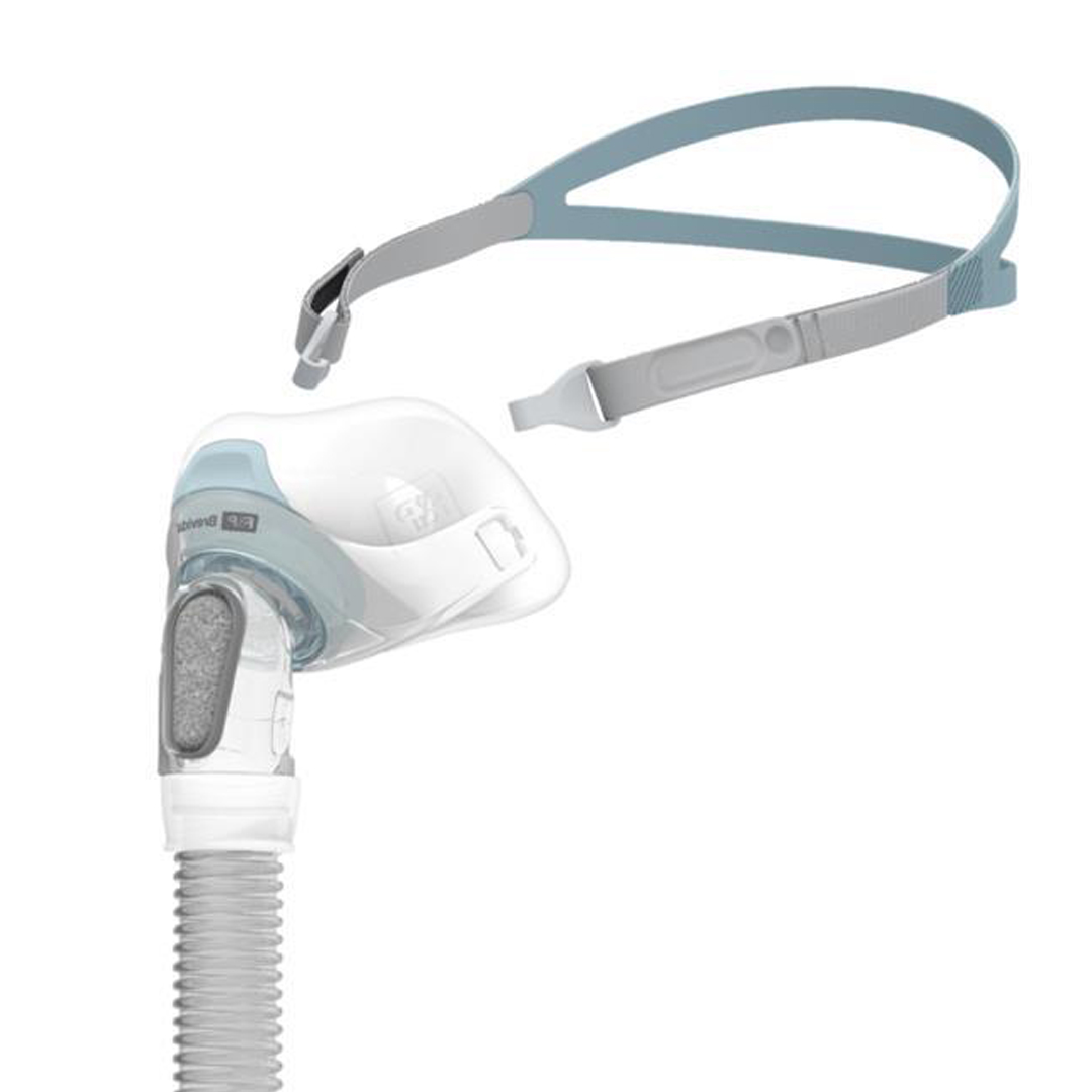 The VisiBlue™ highlights incorporated into key mask components assist patients with mask use, orientation, disassembly and reassembly. The adjustable headgear is made from breathable fabric, designed for a personalized and comfortable fit, to stay in place during sleep.